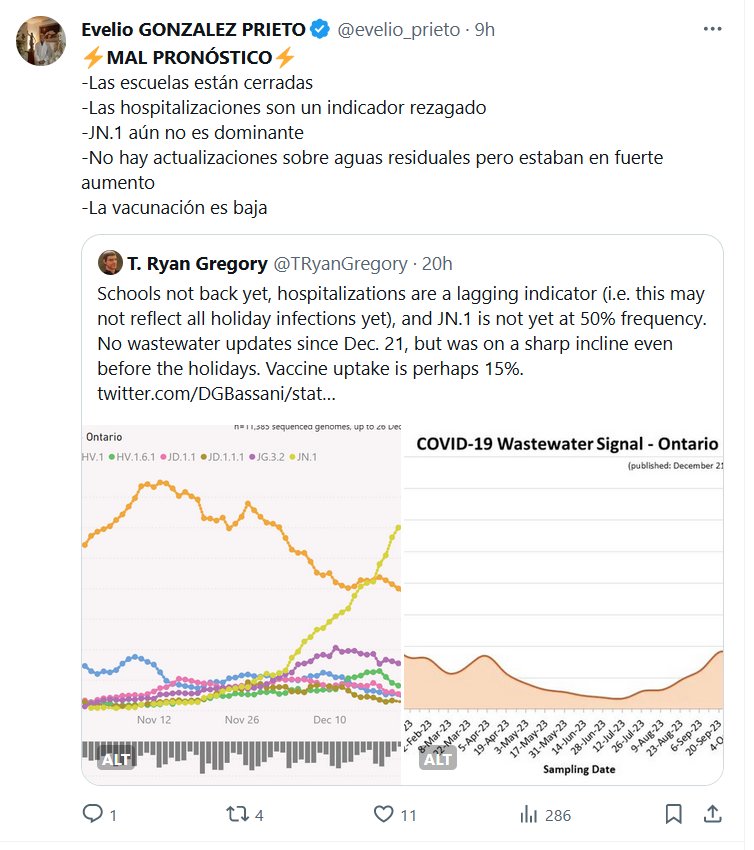 ⚡️MAL PRONÓSTICO⚡️ -Las escuelas están cerradas -Las hospitalizaciones son un indicador rezagado -JN.1 aún no es dominante -No hay actualizaciones sobre aguas residuales pero estaban en fuerte aumento -La vacunación es baja