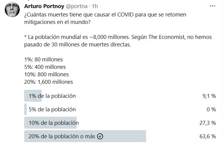 ENCUESTA ¿Cuántas muertes tiene que causar el COVID para que se retomen mitigaciones en el mundo? * La población mundial es ~8,000 millones. Según The Economist, no hemos pasado de 30 millones de muertes directas.