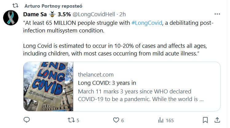 THE LANCET (EN INGLÉS) “Al menos 65 MILLONES de personas luchan contra #LongCovid, una afección multisistémica debilitante posterior a la infección. Se estima que el Covid prolongado ocurre entre el 10% y el 20% de los casos y afecta a todas las edades, incluidos los niños, y la mayoría de los casos se deben a una enfermedad aguda leve”