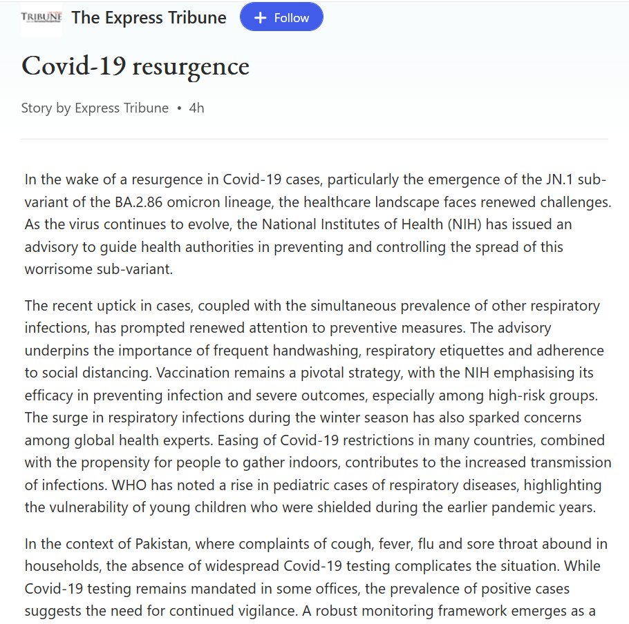 EN INGLÉS Resurgimiento del Covid-19 A raíz del resurgimiento de los casos de Covid-19, en particular el surgimiento de la subvariante JN.1 del linaje ómicrón BA.2.86, el panorama de la atención sanitaria enfrenta nuevos desafíos