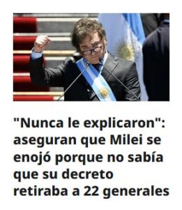 PESTE POLÍTICA DE TÍTERES: EL GUAIDÓ ARGENTINO NO SABE LO QUE FORMA! Posted on enero 7, 2024 por coronado https://actualidad.rt.com/actualidad/494816-milei-enojo-pasar-retiro-generales-ejercito