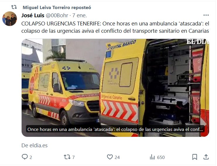 COLAPSO URGENCIAS TENERIFE: Once horas en una ambulancia ‘atascada’: el colapso de las urgencias aviva el conflicto del transporte sanitario en Canarias Posted on enero 8, 2024 por coronado