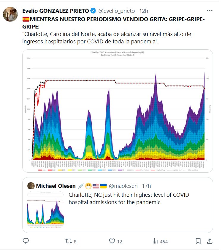 LA GRIPALIZACIÓN ES UN CRIMEN 🇪🇸MIENTRAS NUESTRO PERIODISMO VENDIDO GRITA: GRIPE-GRIPE-GRIPE: «Charlotte, Carolina del Norte, acaba de alcanzar su nivel más alto de ingresos hospitalarios por COVID de toda la pandemia».