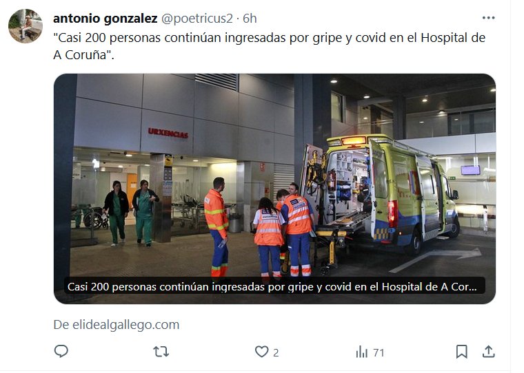 «Casi 200 personas continúan ingresadas por gripe y covid en el Hospital de A Coruña» Posted on enero 9, 2024 por coronado