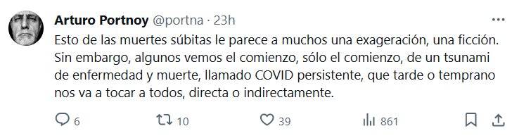 Esto de las muertes súbitas le parece a muchos una exageración, una ficción. Sin embargo, algunos vemos el comienzo, sólo el comienzo, de un tsunami de enfermedad y muerte, llamado COVID persistente, que tarde o temprano nos va a tocar a todos, directa o indirectamente