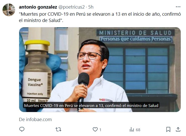 Y ES LA 1º SEMANA! «Muertes por COVID-19 en Perú se elevaron a 13 en el inicio de año, confirmó el ministro de Salud» Posted on enero 9, 2024 por coronado