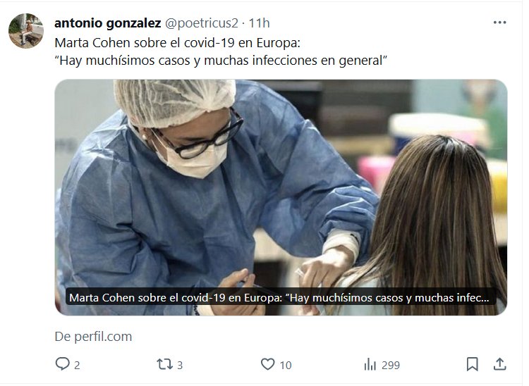 RECUPERÓ LA VOZ! Marta Cohen sobre el covid-19 en Europa: “Hay muchísimos casos y muchas infecciones en general” Posted on enero 11, 2024 por coronado https://www.perfil.com/noticias/canal-e/Marta-Cohen-sobre-el-covid-19-en-Europa-Hay-much%C3%ADsimos-casos-y-muchas-infecciones-en-general.phtml