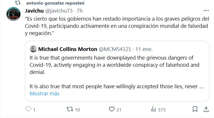 «Es cierto que los gobiernos han restado importancia a los graves peligros del Covid-19, participando activamente en una conspiración mundial de falsedad y negación.» Posted on enero 12, 2024 por coronado https://twitter.com/MCM54321/status/1745513493036720560