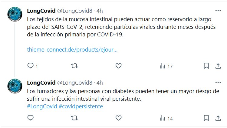 Los tejidos de la mucosa intestinal pueden actuar como reservorio a largo plazo del SARS-CoV-2, reteniendo partículas virales durante meses después de la infección primaria por COVID-19. Posted on enero 12, 2024 por coronado https://www.thieme-connect.de/products/ejournals/abstract/10.1055/a-2180-9872?device=mobile&innerWidth=384&offsetWidth=384&s=09