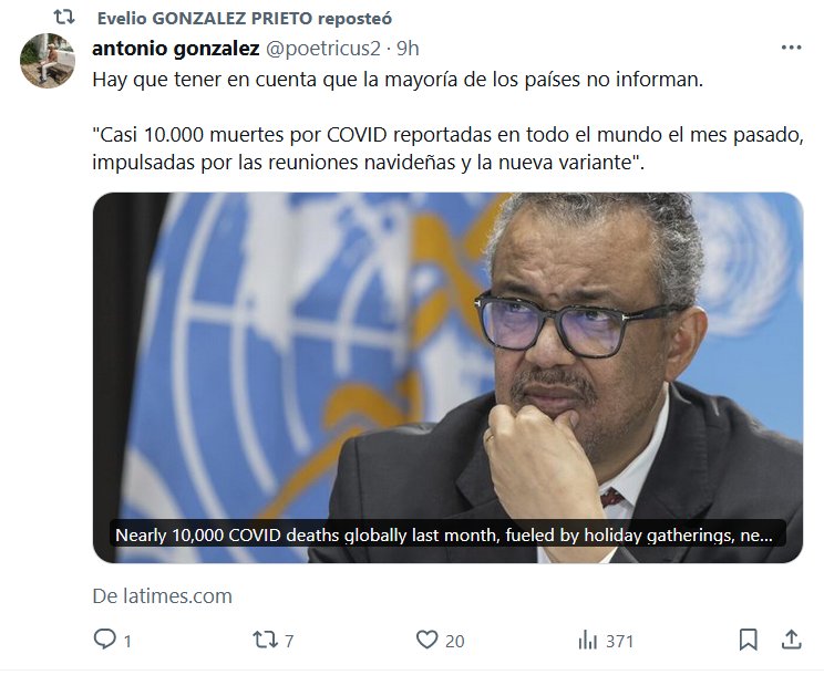 SI NO INFORMAN Y HAY 10000, POR CUÁNTO HAY QUE MULTIPLICAR? Hay que tener en cuenta que la mayoría de los países no informan. «Casi 10.000 muertes por COVID reportadas en todo el mundo el mes pasado, impulsadas por las reuniones navideñas y la nueva variante»
