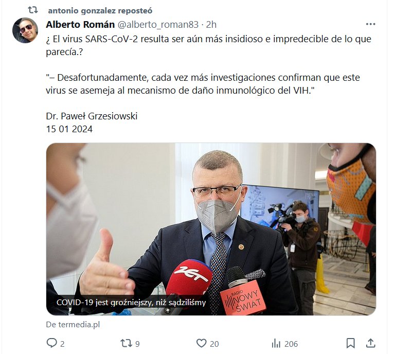 ¿ El virus SARS-CoV-2 resulta ser aún más insidioso e impredecible de lo que parecía.? «– Desafortunadamente, cada vez más investigaciones confirman que este virus se asemeja al mecanismo de daño inmunológico del VIH.» Dr. Paweł Grzesiowski 15 01 2024