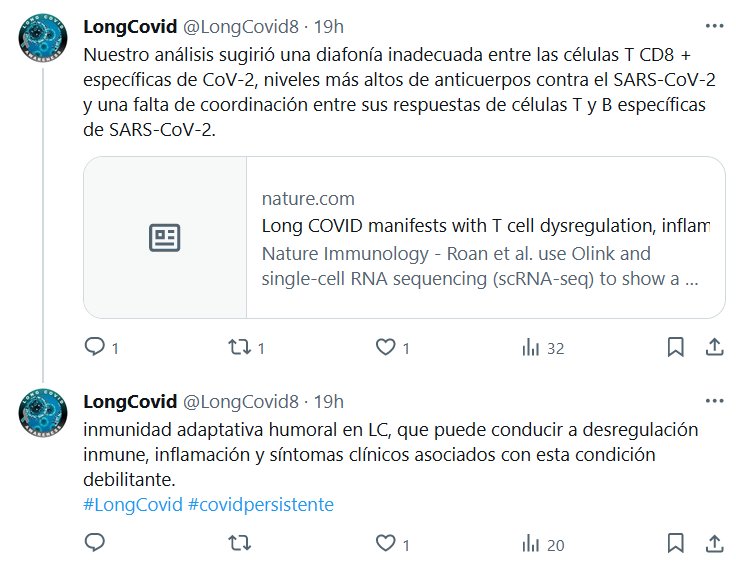 Nuestro análisis sugirió una diafonía inadecuada entre las células T CD8 + específicas de CoV-2, niveles más altos de anticuerpos contra el SARS-CoV-2 y una falta de coordinación entre sus respuestas de células T y B específicas de SARS-CoV-2. inmunidad adaptativa humoral en LC, que puede conducir a desregulación inmune, inflamación y síntomas clínicos asociados con esta condición debilitante. #LongCovid #covidpersistente