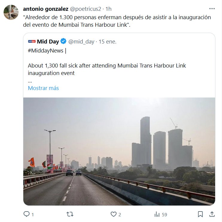 HACER COMO QUE NO PASA NADA NO ESTARÍA RESULTANDO «Alrededor de 1.300 personas enferman después de asistir a la inauguración del evento de Mumbai Trans Harbour Link» Posted on enero 16, 2024 por coronado