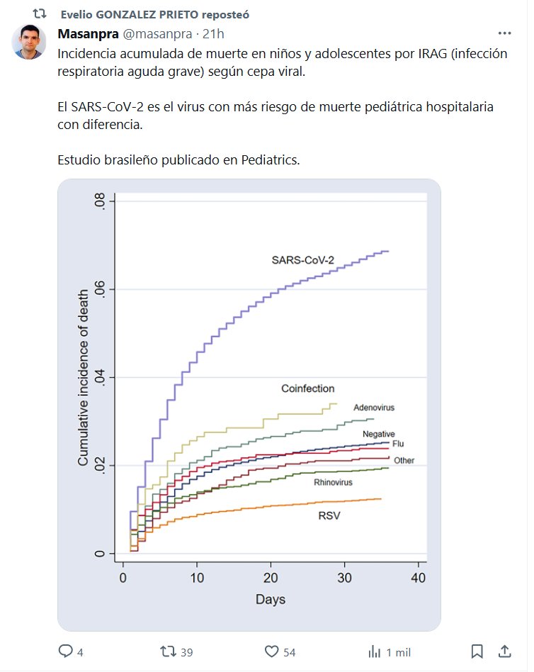 LESA HUMANIDAD Incidencia acumulada de muerte en niños y adolescentes por IRAG (infección respiratoria aguda grave) según cepa viral. El SARS-CoV-2 es el virus con más riesgo de muerte pediátrica hospitalaria con diferencia. Estudio brasileño publicado en Pediatrics