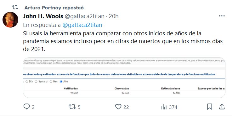 Si usais la herramienta para comparar con otros inicios de años de la pandemia estamos incluso peor en cifras de muertos que en los mismos días de 2021 Posted on enero 16, 2024 por coronado