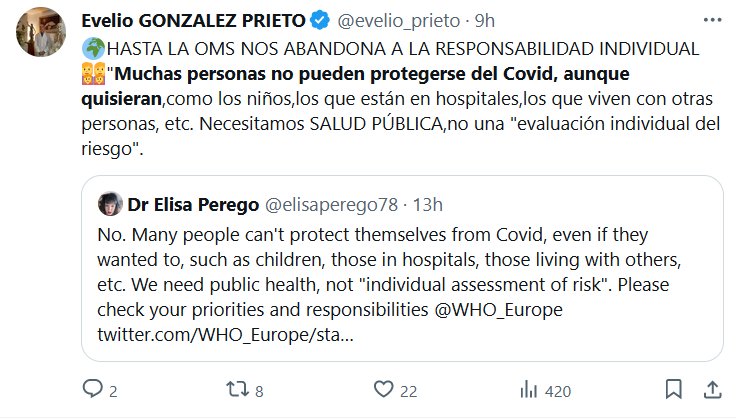 🌍HASTA LA OMS NOS ABANDONA A LA RESPONSABILIDAD INDIVIDUAL 👩👩👧👧»Muchas personas no pueden protegerse del Covid, aunque quisieran,como los niños,los que están en hospitales,los que viven con otras personas, etc. Necesitamos SALUD PÚBLICA,no una «evaluación individual del riesgo»