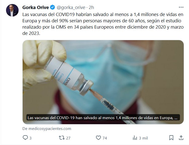 Las vacunas del COVID19 habrían salvado al menos a 1,4 millones de vidas en Europa y más del 90% serían personas mayores de 60 años, según el estudio realizado por la OMS en 34 países Europeos entre diciembre de 2020 y marzo de 2023