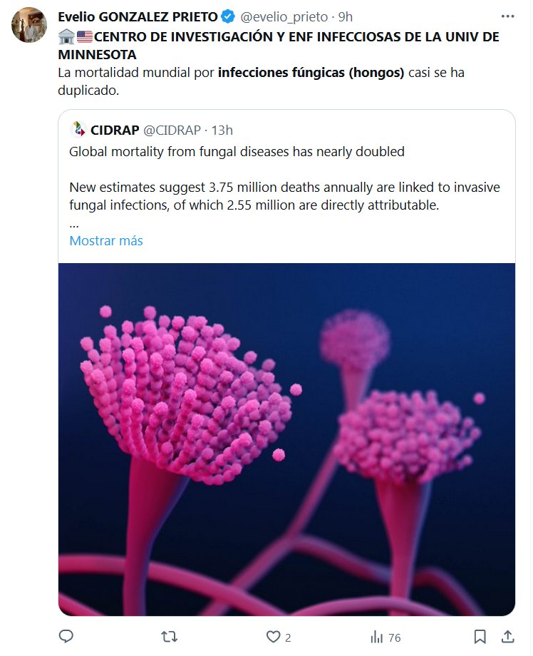 POSTCOVID HACE ESTRAGOS 🏦🇺🇸CENTRO DE INVESTIGACIÓN Y ENF INFECCIOSAS DE LA UNIV DE MINNESOTA La mortalidad mundial por infecciones fúngicas (hongos) casi se ha duplicado