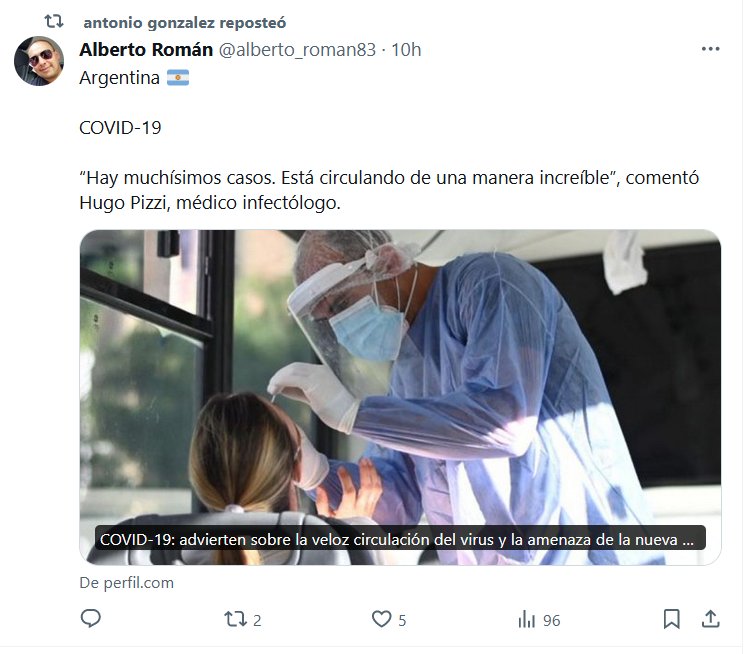 Argentina 🇦🇷 COVID-19 “Hay muchísimos casos. Está circulando de una manera increíble”, comentó Hugo Pizzi, médico infectólogo Posted on enero 20, 2024 por coronado https://www.perfil.com/noticias/cordoba/covid-19-advierten-sobre-la-veloz-circulacion-del-virus-y-la-amenaza-de-la-nueva-variante-j-n1.phtml