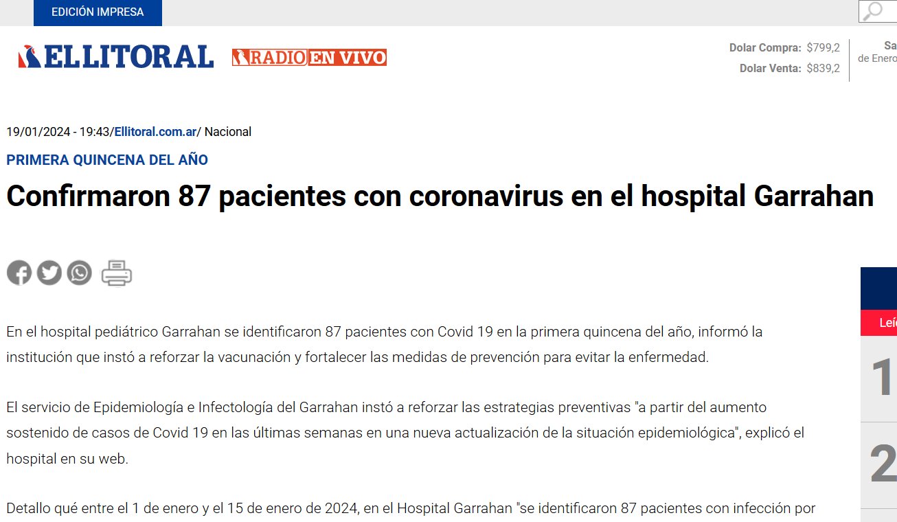 Confirmaron 87 pacientes con coronavirus en el hospital Garrahan En el hospital pediátrico Garrahan se identificaron 87 pacientes con Covid 19 en la primera quincena del año, informó la institución que instó a reforzar la vacunación y fortalecer las medidas de prevención para evitar la enfermedad