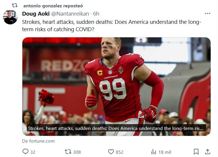 EN INGLÉS Accidentes cerebrovasculares, ataques cardíacos, muertes súbitas: ¿Estados Unidos comprende los riesgos a largo plazo de contraer COVID? Posted on enero 20, 2024 por coronado https://fortune.com/2022/10/06/strokes-heart-attacks-sudden-death-america-long-term-risks-catching-covid-carolyn-barber/