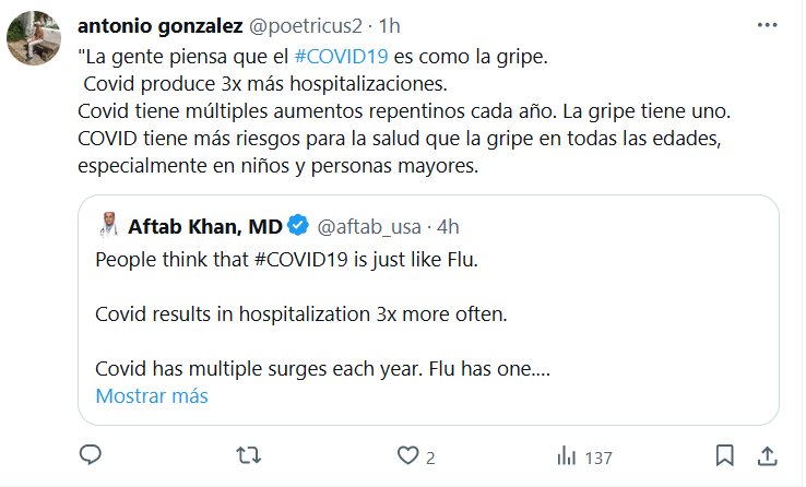 Y COVID TIENE LONGCOVID DE REGALO «La gente piensa que el #COVID19 es como la gripe. Covid produce 3x (3 VECES) más hospitalizaciones. Covid tiene múltiples aumentos repentinos cada año. La gripe tiene uno. COVID tiene más riesgos para la salud que la gripe en todas las edades, especialmente en niños y personas mayores.