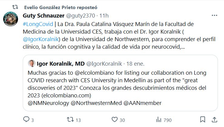 #LongCovid | La Dra. Paula Catalina Vásquez Marín de la Facultad de Medicina de la Universidad CES, trabaja con el Dr. Igor Koralnik (@IgorKoralnik ) de la Universidad de Northwestern, para comprender el perfil clínico, la función cognitiva y la calidad de vida por neurocovid