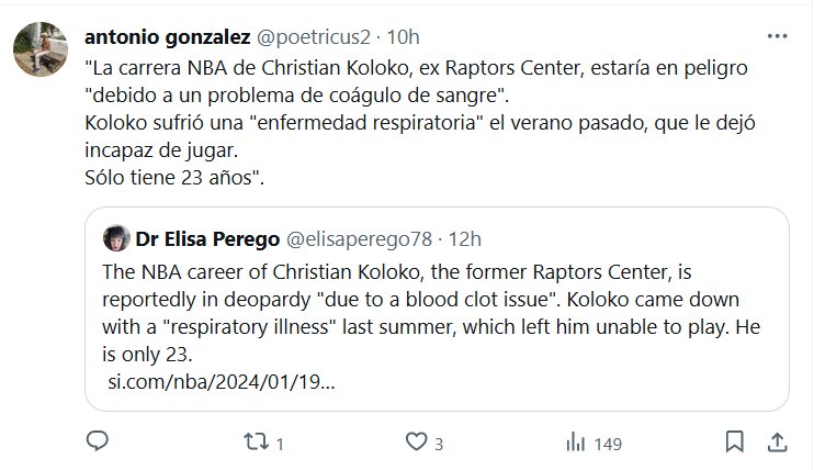 NODIGASCOVID HACE ESTRAGOS «La carrera NBA de Christian Koloko, ex Raptors Center, estaría en peligro «debido a un problema de coágulo de sangre». Koloko sufrió una «enfermedad respiratoria» el verano pasado, que le dejó incapaz de jugar. Sólo tiene 23 años»
