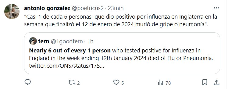 RESULTADO DE DISFRAZAR COVID «Casi 1 de cada 6 personas que dio positivo por influenza en Inglaterra en la semana que finalizó el 12 de enero de 2024 murió de gripe o neumonía». Posted on enero 24, 2024 por coronado