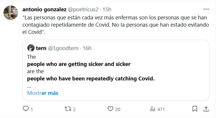VERDAD ANTIVIRAL «Las personas que están cada vez más enfermas son los personas que se han contagiado repetidamente de Covid. No la personas que han estado evitando el Covid» Posted on enero 24, 2024 por coronado