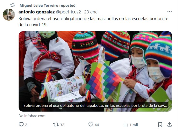 Bolivia ordena el uso obligatorio de las mascarillas en las escuelas por brote de la covid-19 Posted on enero 25, 2024 por coronado