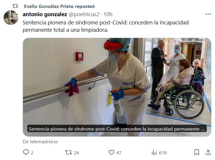 Sentencia pionera de síndrome post-Covid: conceden la incapacidad permanente total a una limpiadora Posted on enero 25, 2024 por coronado