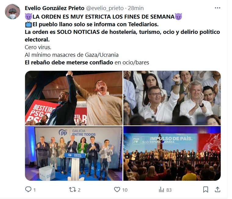 EL MAL PASTOR Y SUS OVEJAS COVIDIOTAS AL MATADERO 📺El pueblo llano solo se informa con Telediarios. La orden es SOLO NOTICIAS de hostelería, turismo, ocio y delirio político electoral. Cero virus. Al mínimo masacres de Gaza/Ucrania El rebaño debe meterse confiado en ocio/bares