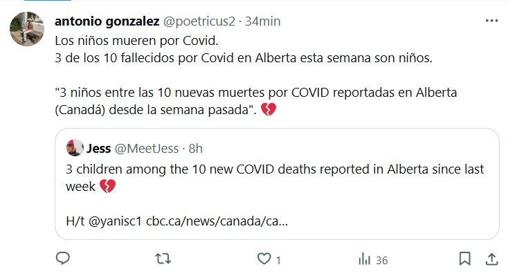 LESA HUMANIDAD Los niños mueren por Covid. 3 de los 10 fallecidos por Covid en Alberta esta semana son niños. «3 niños entre las 10 nuevas muertes por COVID reportadas en Alberta (Canadá) desde la semana pasada». 💔