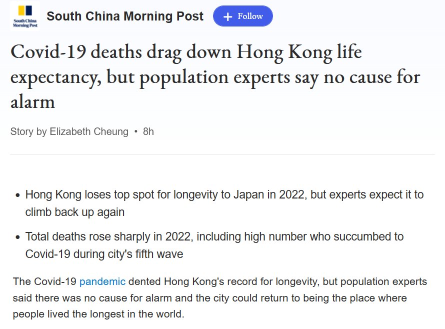MORIRÁ, PERO NO SE ALARME, SERÁ DE MUERTE «LEVE» (EN INGLÉS) Las muertes por Covid-19 reducen la esperanza de vida en Hong Kong, pero los expertos en población dicen que no hay motivo de alarma