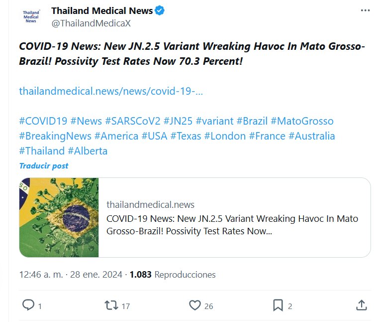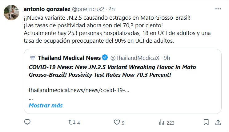 ¡¡Nueva variante JN.2.5 causando estragos en Mato Grosso-Brasil! ¡Las tasas de positividad ahora son del 70,3 por ciento! Actualmente hay 253 personas hospitalizadas, 18 en UCI de adultos y una tasa de ocupación preocupante del 90% en UCI de adultos