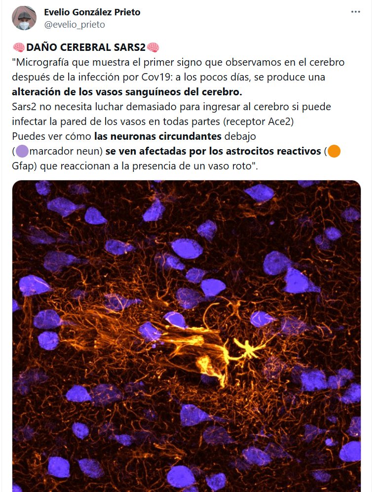 NO MASK NO BRAIN 🧠DAÑO CEREBRAL SARS2🧠 «Micrografía que muestra el primer signo que observamos en el cerebro después de la infección por Cov19: a los pocos días, se produce una alteración de los vasos sanguíneos del cerebro. Sars2 no necesita luchar demasiado para ingresar al cerebro si puede infectar la pared de los vasos en todas partes (receptor Ace2)