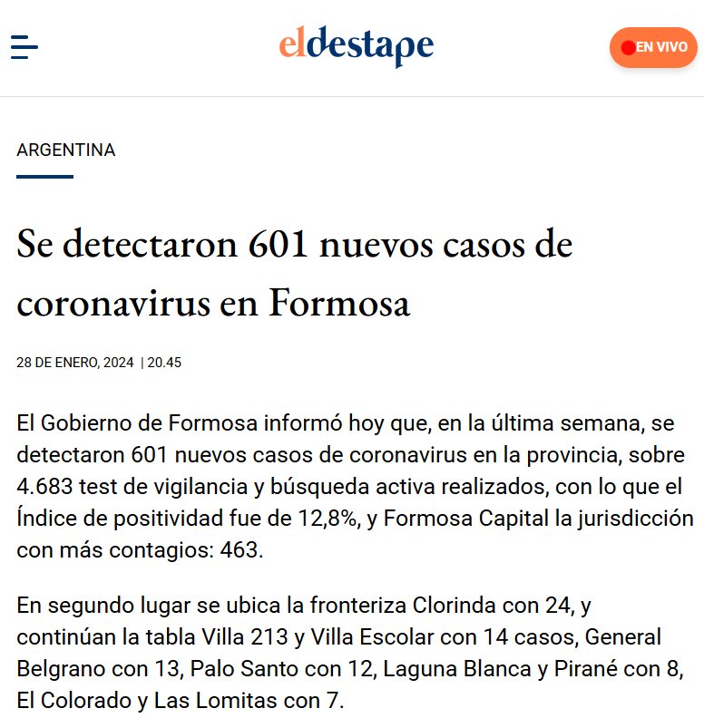 Y LOS QUE NO SE DETECTARON CUÁNTOS FUERON? Se detectaron 601 nuevos casos de coronavirus en Formosa Posted on enero 29, 2024 por coronado https://www.eldestapeweb.com/informacion-general/argentina/se-detectaron-601-nuevos-casos-de-coronavirus-en-formosa-202412820450