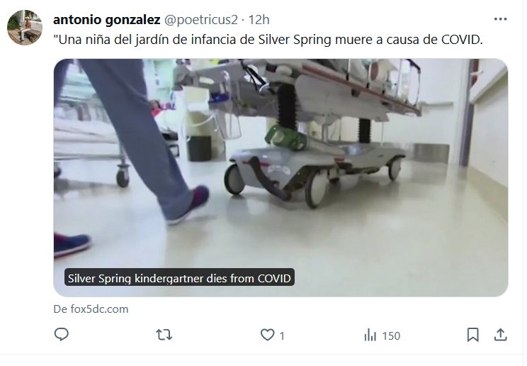 LESA HUMANIDAD «Una niña del jardín de infancia de Silver Spring muere a causa de COVID» Posted on enero 31, 2024 por coronado