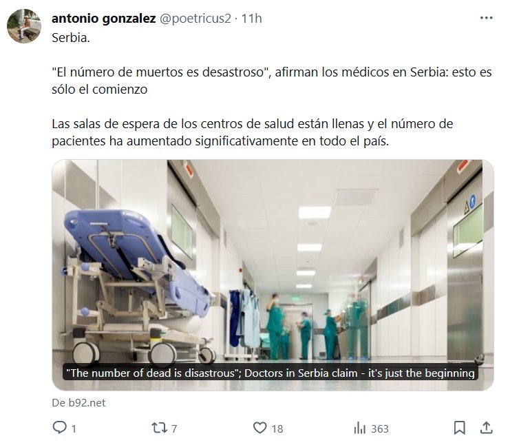 TESTIMONIOS Serbia. «El número de muertos es desastroso», afirman los médicos en Serbia: esto es sólo el comienzo Las salas de espera de los centros de salud están llenas y el número de pacientes ha aumentado significativamente en todo el país