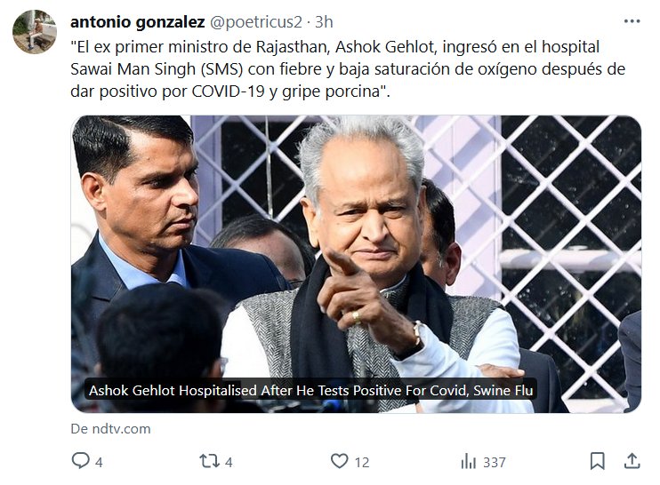 «El ex primer ministro de Rajasthan, Ashok Gehlot, ingresó en el hospital Sawai Man Singh (SMS) con fiebre y baja saturación de oxígeno después de dar positivo por COVID-19 y gripe porcina» Posted on febrero 3, 2024 por coronado
