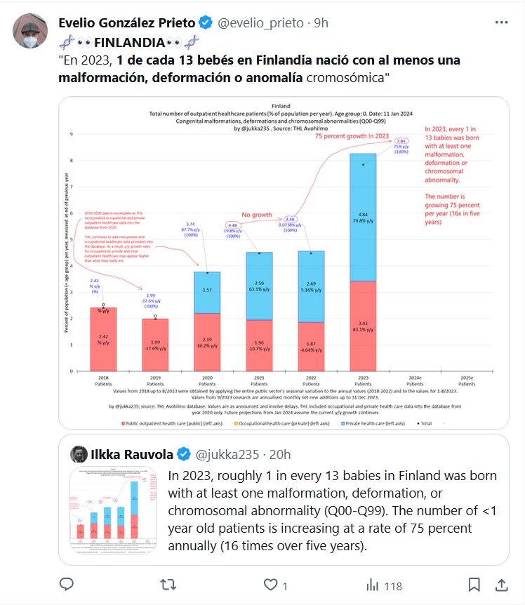 POR LAS INFECCIONES COVID??? 🧬👀FINLANDIA👀🧬 «En 2023, 1 de cada 13 bebés en Finlandia nació con al menos una malformación, deformación o anomalía cromosómica» Posted on febrero 3, 2024 por coronado