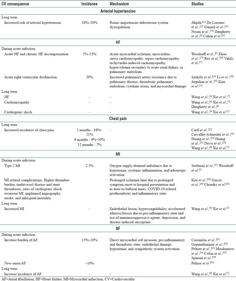 Hipertensión arterial, insuficiencia cardíaca, angina de pecho, infarto de miocardio y fibrilación auricular después de la COVID-19: una revisión narrativa