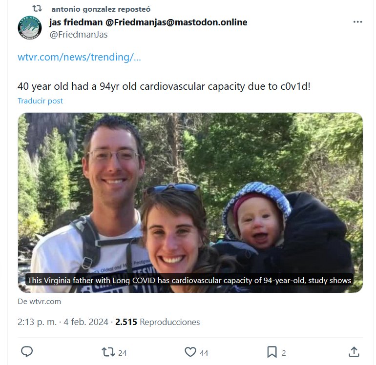 NO ERA LEVE ¡Un hombre de 40 años TIENE una capacidad cardiovascular de 94 años debido al COVID! Posted on febrero 4, 2024 por coronado