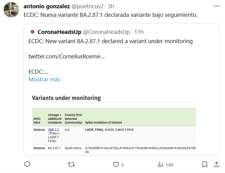 LAS SIGUEN A TODAS Y NO ALCANZAN A NINGUNA! ECDC: Nueva variante BA.2.87.1 declarada variante bajo seguimiento Posted on febrero 5, 2024 por coronado