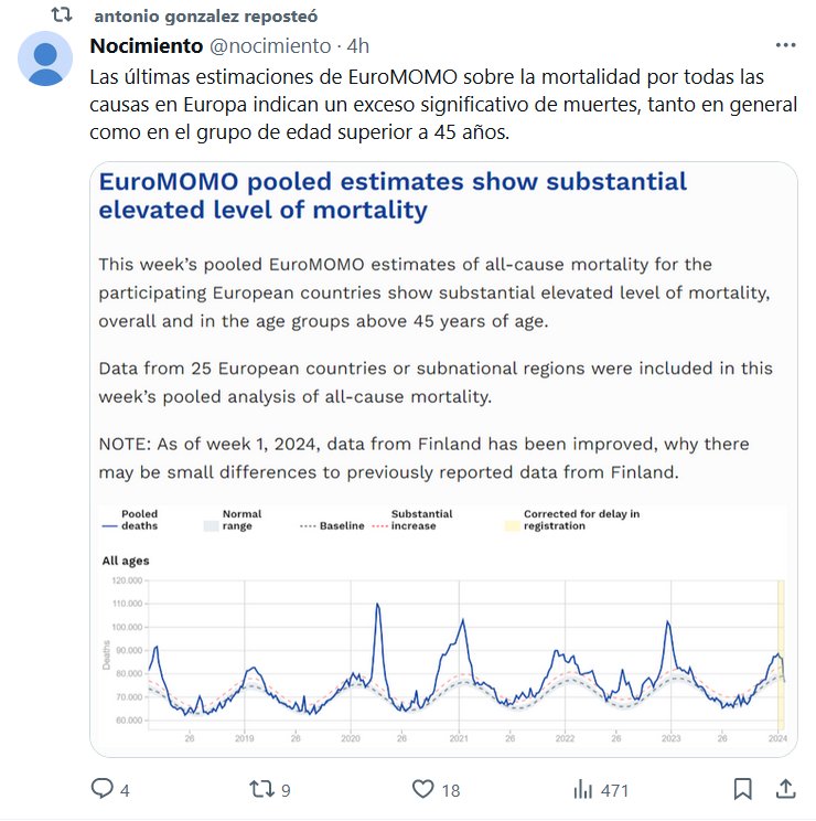 NODIGASCOVID HACE ESTRAGOS Las últimas estimaciones de EuroMOMO sobre la mortalidad por todas las causas en Europa indican un exceso significativo de muertes, tanto en general como en el grupo de edad superior a 45 años