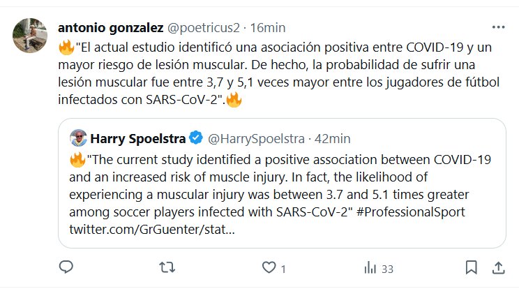 🔥»El actual estudio identificó una asociación positiva entre COVID-19 y un mayor riesgo de lesión muscular. De hecho, la probabilidad de sufrir una lesión muscular fue entre 3,7 y 5,1 veces mayor entre los jugadores de fútbol infectados con SARS-CoV-2″.🔥
