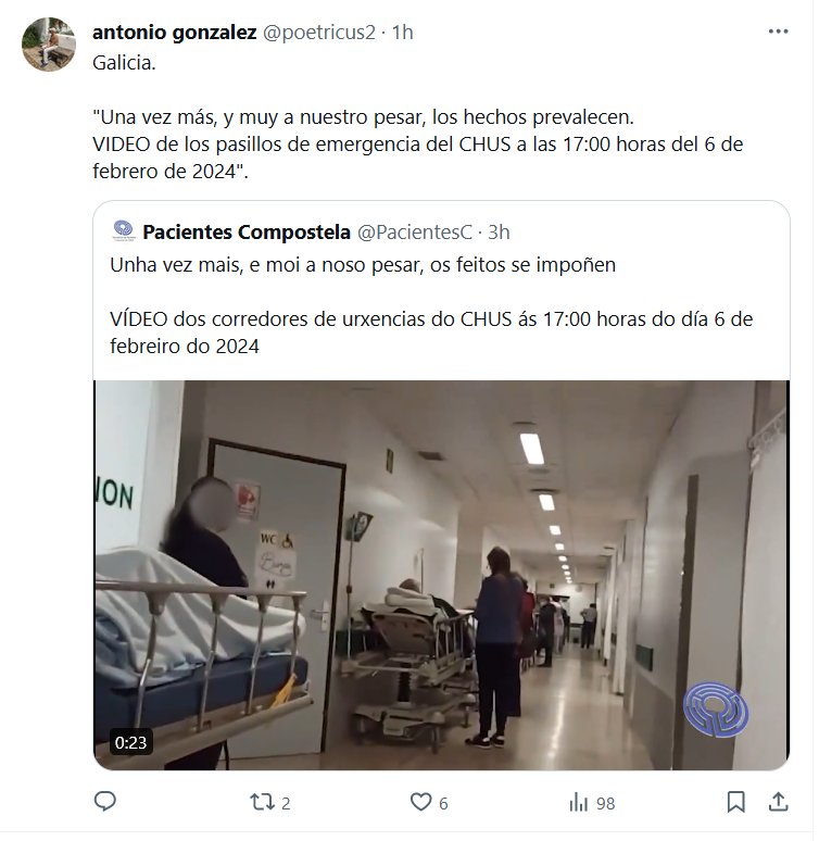 VÍDEO dos corredores de urxencias do CHUS ás 17:00 horas do día 6 de febreiro do 2024 pic.twitter.com/hsdKflsEpg