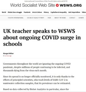 EN INGLÉS Profesor del Reino Unido habla con el WSWS sobre el actual aumento de COVID en las escuelas Posted on febrero 8, 2024 por coronado https://www.wsws.org/en/articles/2024/02/08/gpgm-f08.html