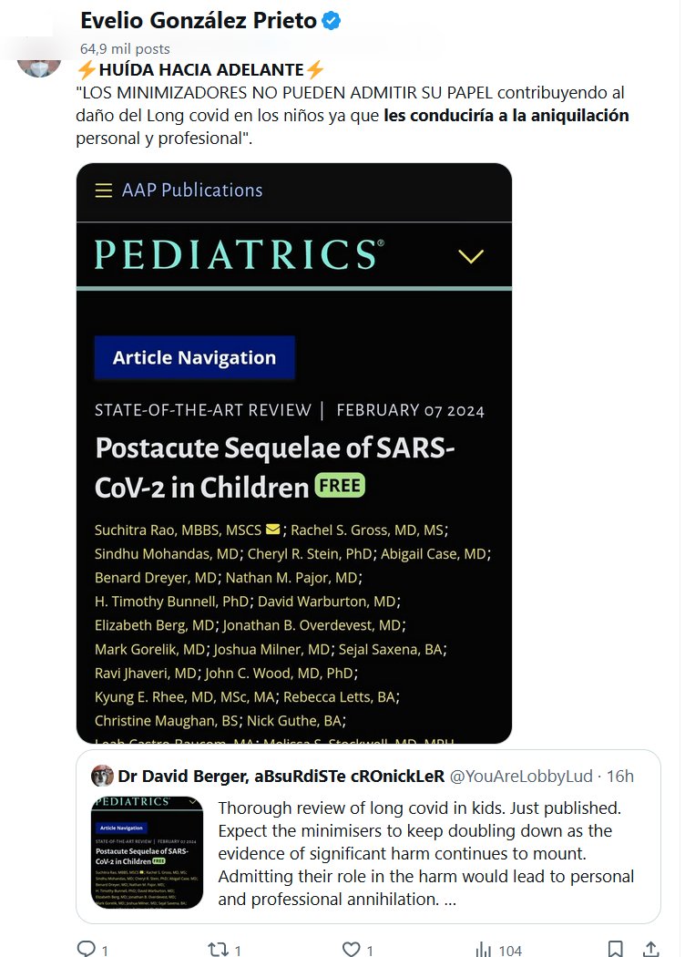 YA SIN ALMA (EN INGLÉS) Revisión exhaustiva del covid prolongado en niños. De publicación reciente. Es de esperar que los minimizadores sigan redoblando sus apuestas a medida que continúa acumulándose la evidencia de un daño significativo. Admitir su papel en el daño conduciría a la aniquilación personal y profesional
